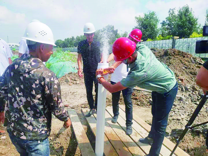 經(jīng)開區(qū)觀天下二期項目用水工程從報裝到通水僅用了40分鐘。圖為工作人員打開水管閥門?!绑@喜!”20日, 上午,在經(jīng)開區(qū)觀天下二期項目的工地.上,吉林富騰集團(tuán)房地產(chǎn)開發(fā)有限責(zé)任公司總經(jīng)理助理陳中秋看著水管里冒出的水流,高興得合不攏嘴。
